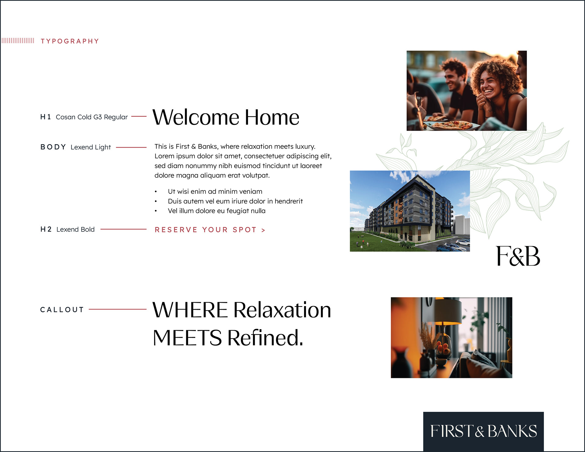 Just steps away from 1st Ave SW and the Zumbro River, First & Banks was named and designed in conjunction with urban convenience and natural beauty. Catering largely to professionals in the medical field, the design is intended to represent a relaxed, comfortable and effortless living experience. While hospitals are bright, sterile and buzzing with activity, F&B is a brand and environment that offers an unrivaled level of tranquility. With a design ethos rooted in natural elements, soothing colors, and floral accents, this community offers peaceful surroundings for those seeking balance between work and life.