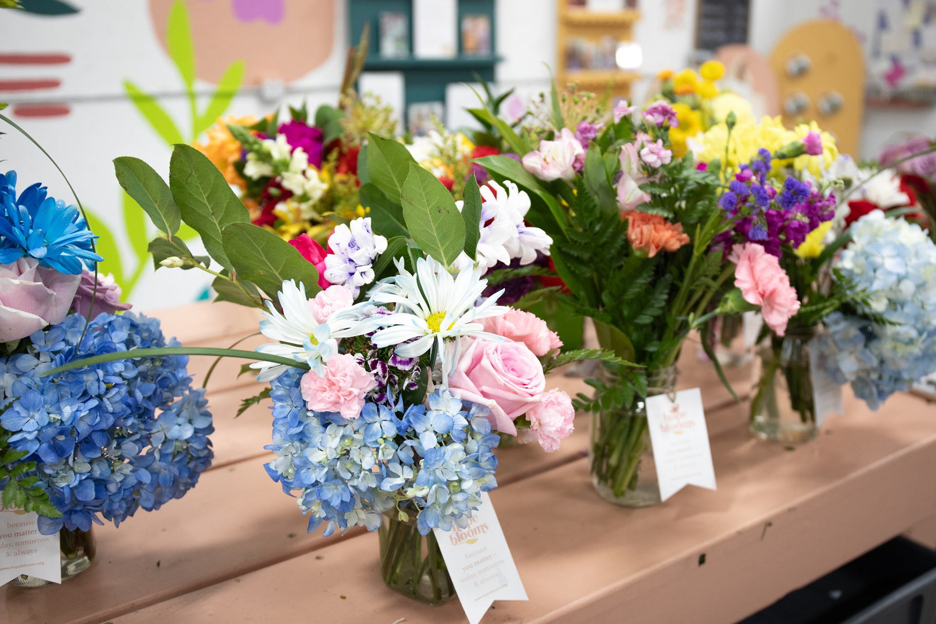 A color-by-number system allowed volunteers of any skill level to help with painting the mural without any guesswork. The mural not only serves as a beautiful backdrop, but also creates a memorable experience for volunteers to take photos with. Additionally, it introduced a brighter, expanded color palette for the Hope Blooms brand to utilize in campaigns.