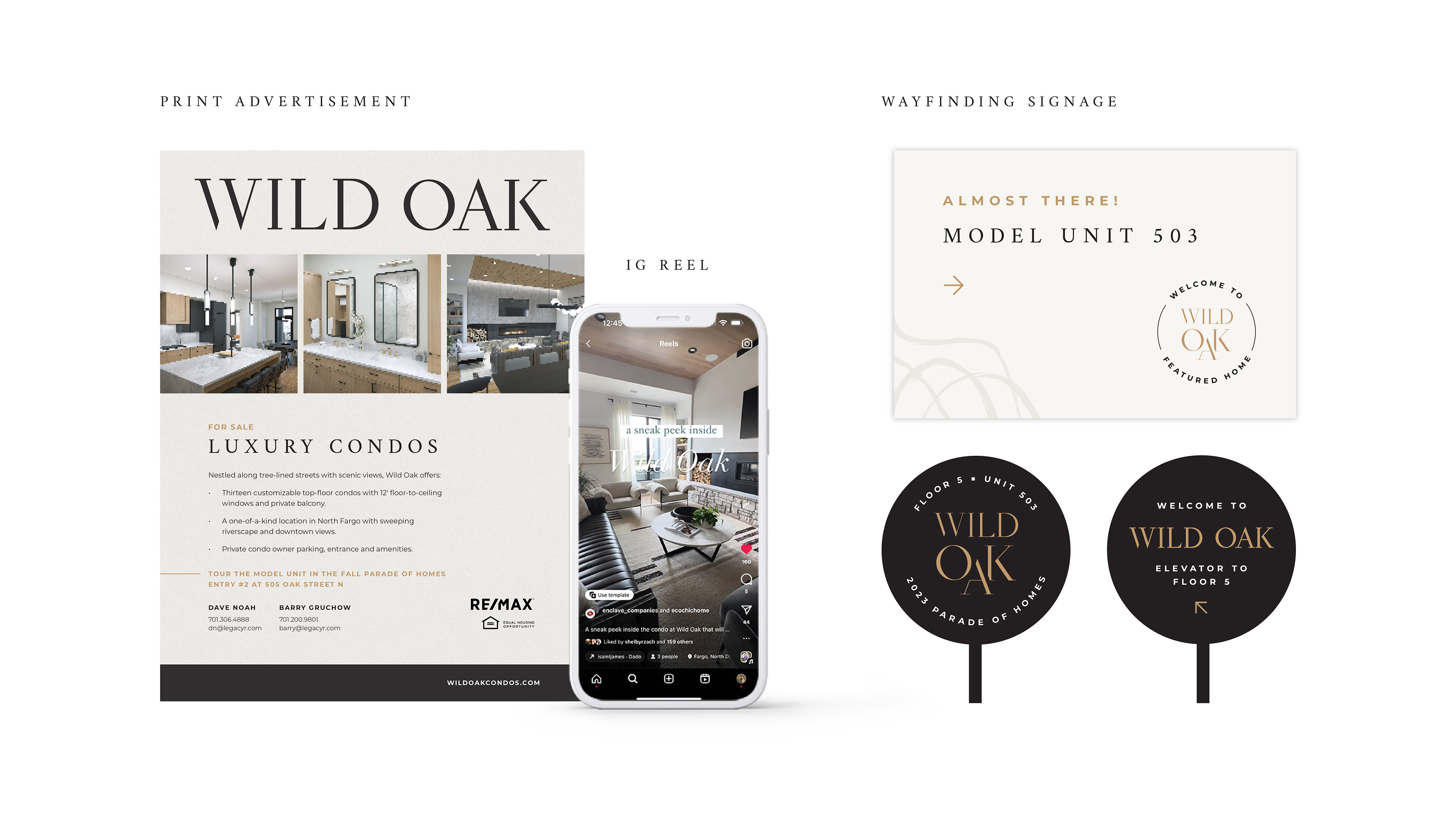 For the Fall 2023 Parade of Homes, Enclave and a local real estate brokerage staged a unit to showcase newly completed condos. To market the event, our team created print advertisements, email copy, social media promotions, and directional signage providing wayfinding to the featured home. Personal responsibilities included designing print materials, signage design and setup, overall brand direction, campaign art direction, and graphic design work.